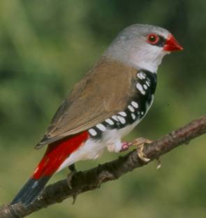 Spotted-sided Finch, Diamond Sparrow, Diamond. Distribution:
